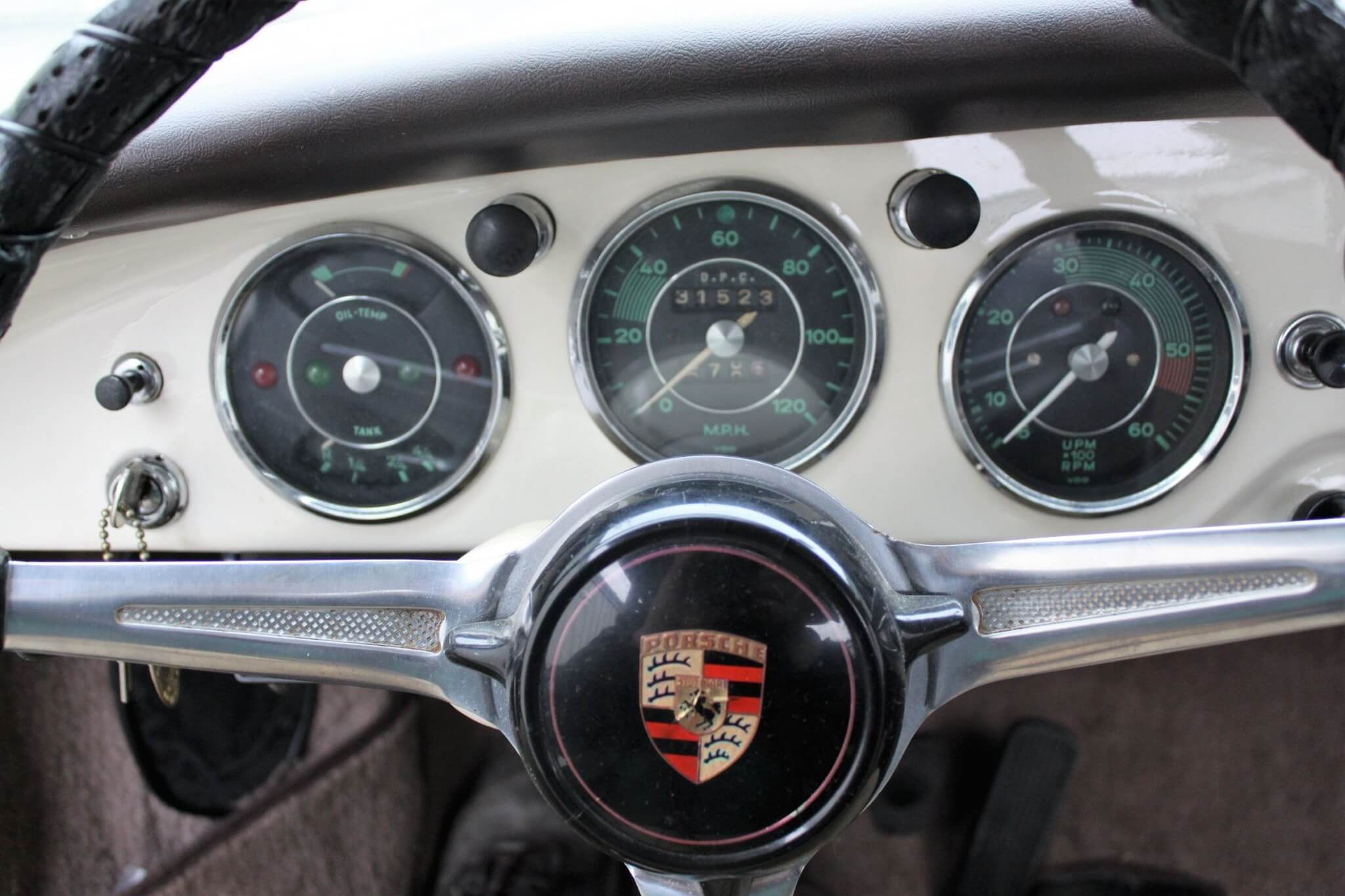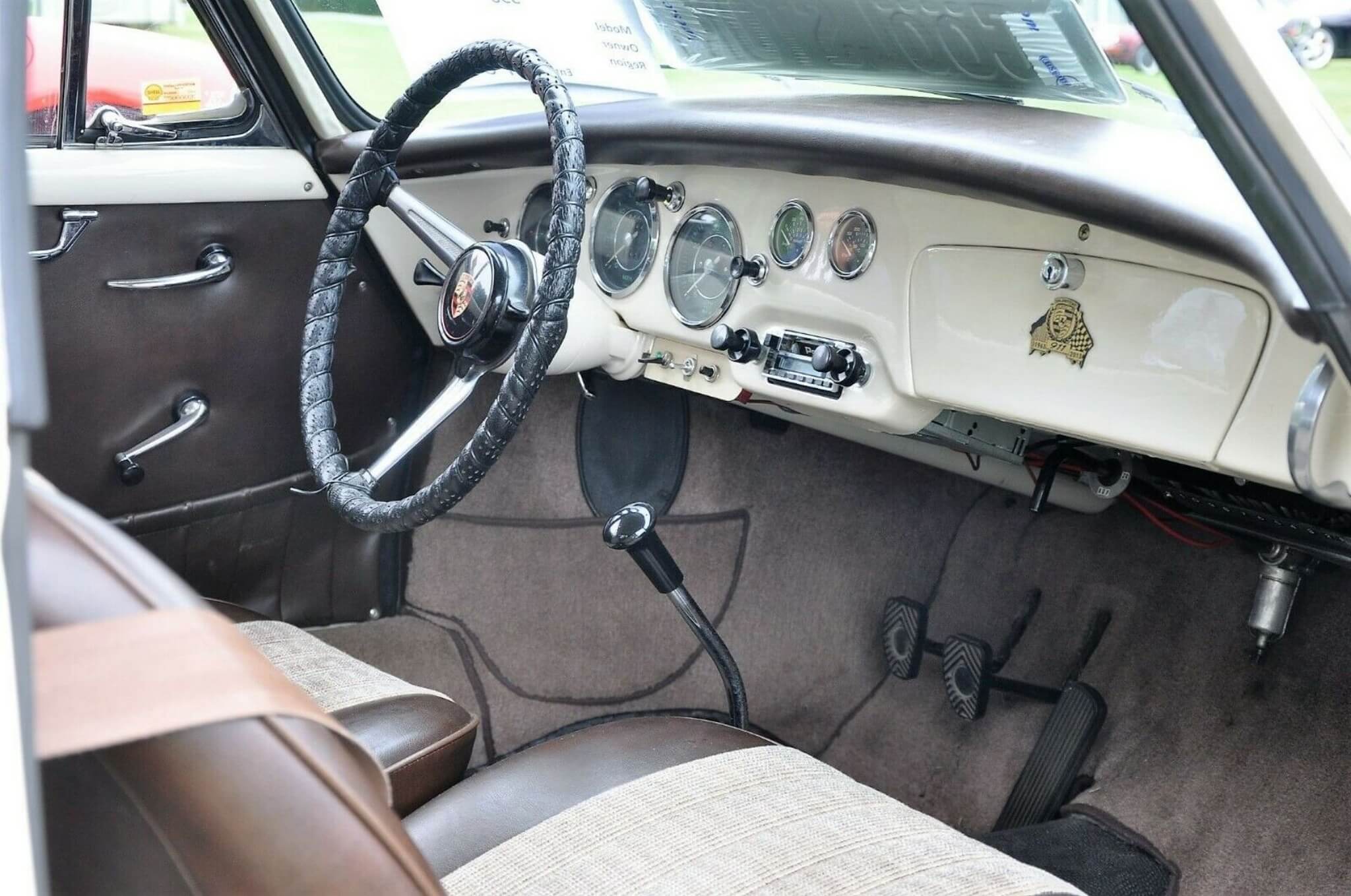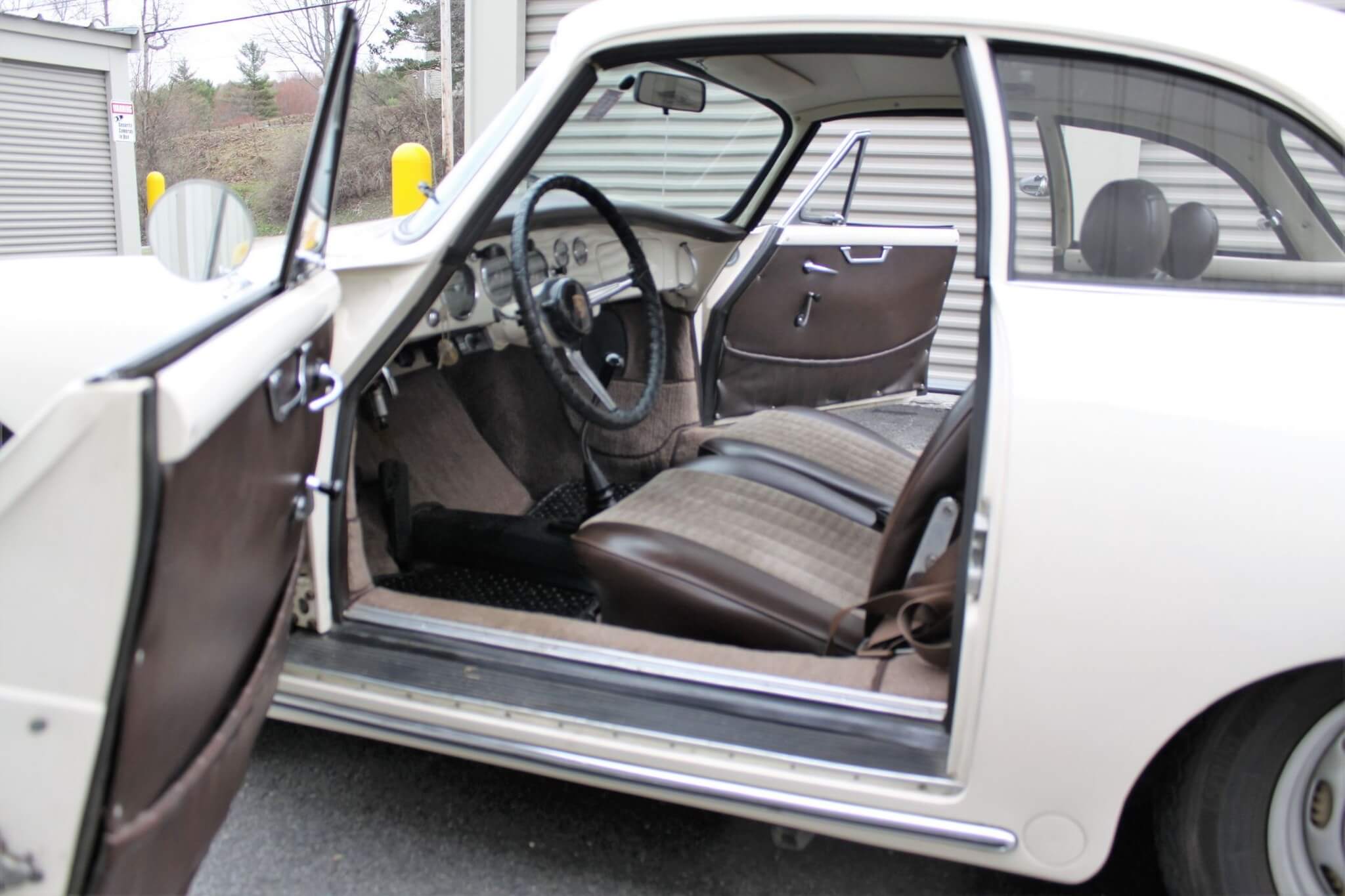 This 1961 Porsche 356B represents the rare and distinctive Karmann Notchback Coupe, one of only 1,048 T5 coupes produced in 1961. Featuring cabriolet bodies converted to coupes at the Karmann factory, these notchbacks are among the most desirable 356 variants. This example has spent its entire life in dry climates, resulting in exceptionally solid and rust-free original metal—the single most important consideration for any 356. Finished in Light Ivory paint applied during a comprehensive 1974 repaint, the car presents remarkably well. With a 1974 interior retrim in dark brown leatherette and corduroy, this Porsche is a beautifully preserved example of early 1960s German craftsmanship.