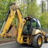 This versatile 4×4 backhoe loader is a true multi-tasking machine, equally capable at loading, digging, and trenching. The comfortable, climate-controlled cab, combined with the E-Stick control system and auxiliary hydraulics, makes it a productive and operator-friendly choice for construction, utility, and landscaping projects. Its transport dimensions (L 294″ x W 96″ x H 153″) make it relatively easy to move between job sites.