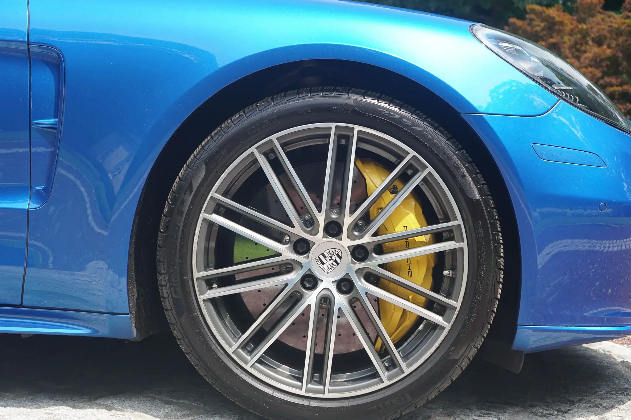 • Standard Porsche Ceramic Composite Brakes (PCCB) with yellow calipers