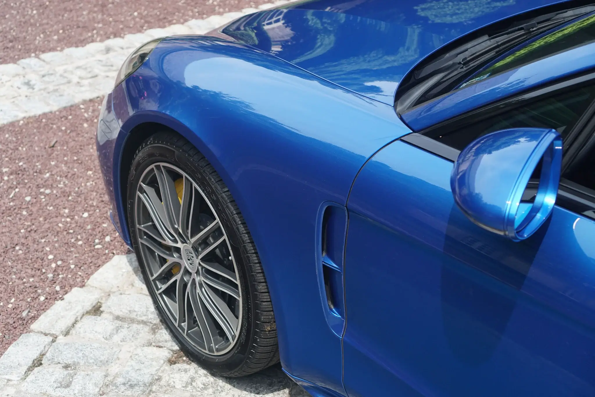 • Black window trim, black “PORSCHE” logo, body-colored mirrors