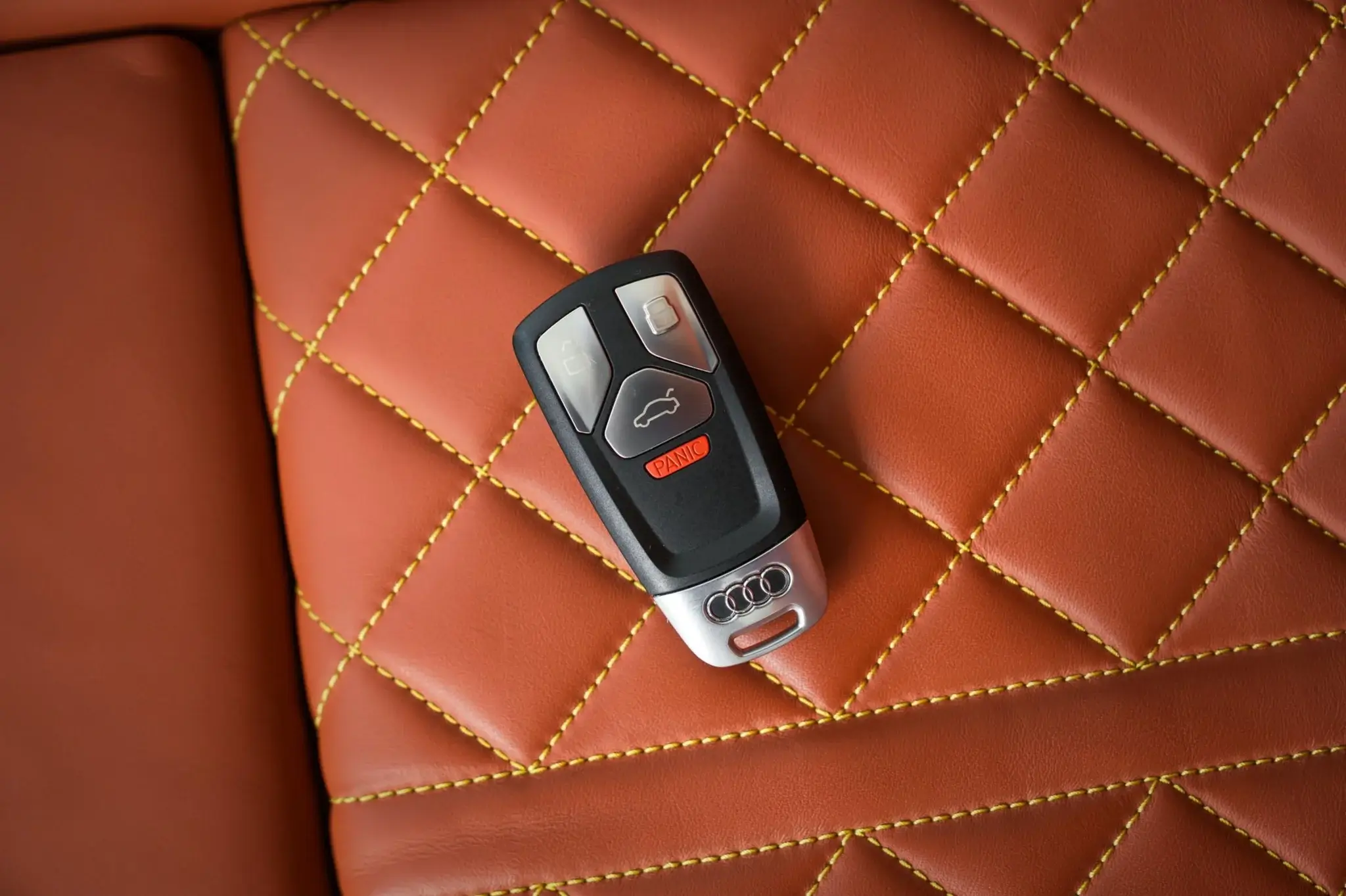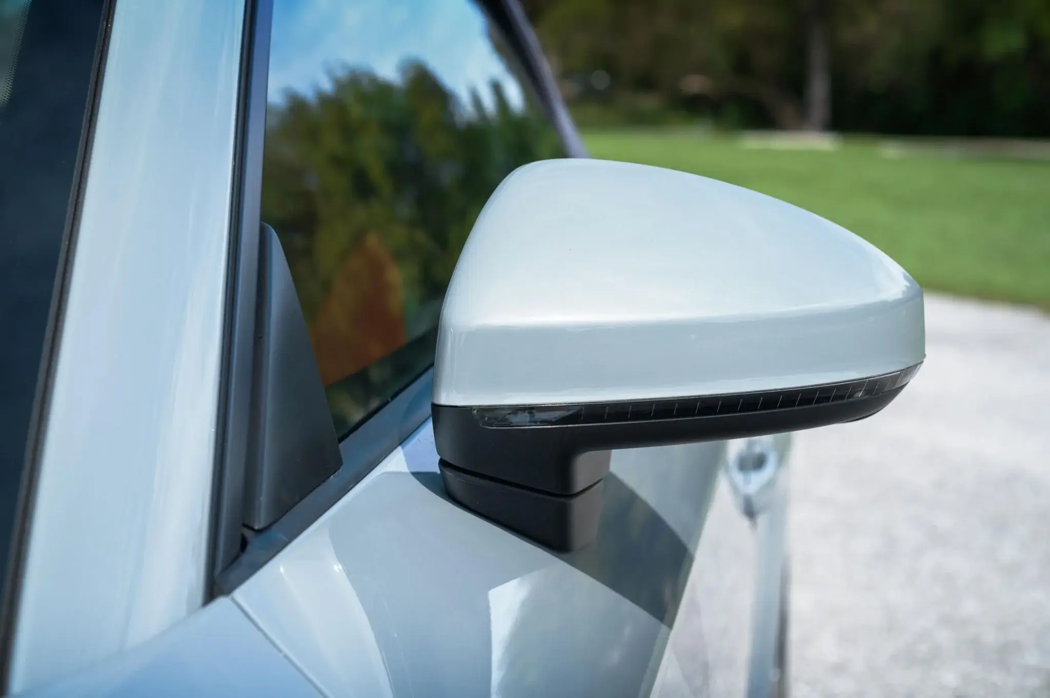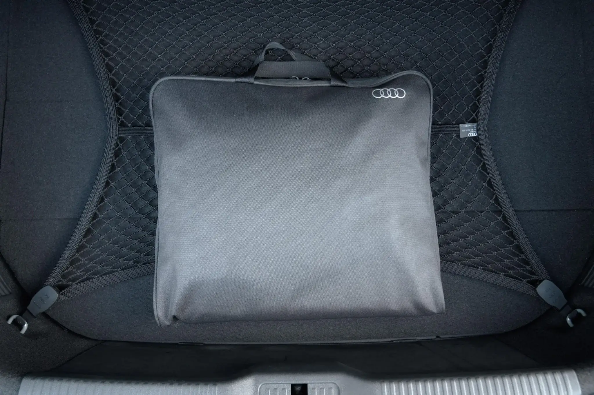 - High-gloss black exterior trim and matte gray Audi rings ahead of the rear wheels