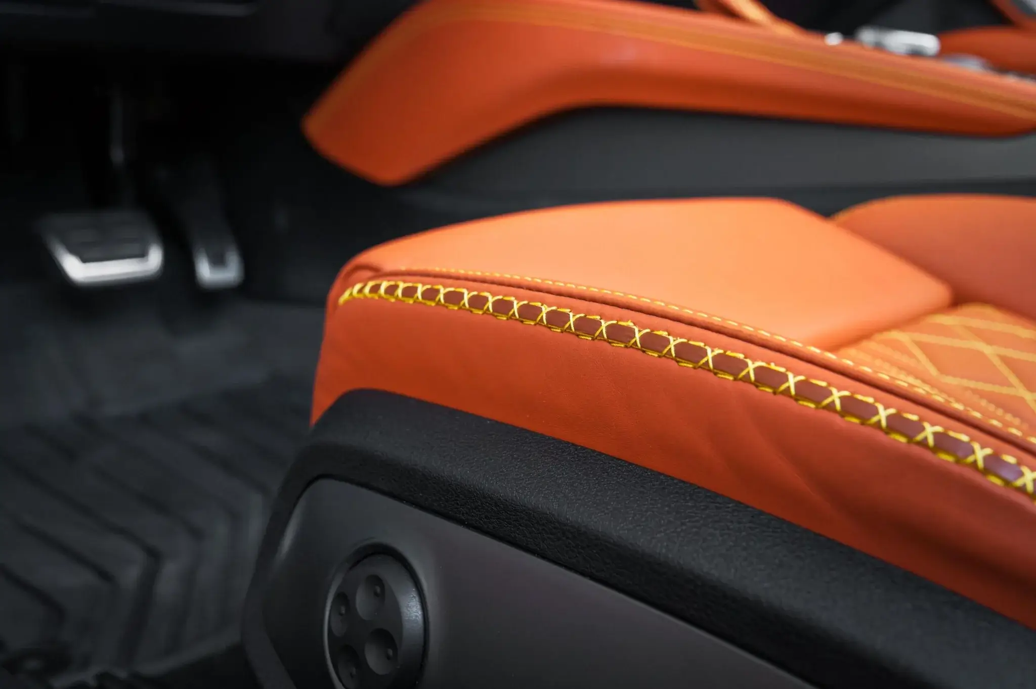 - Power-adjustable seats and aluminum interior trim accents