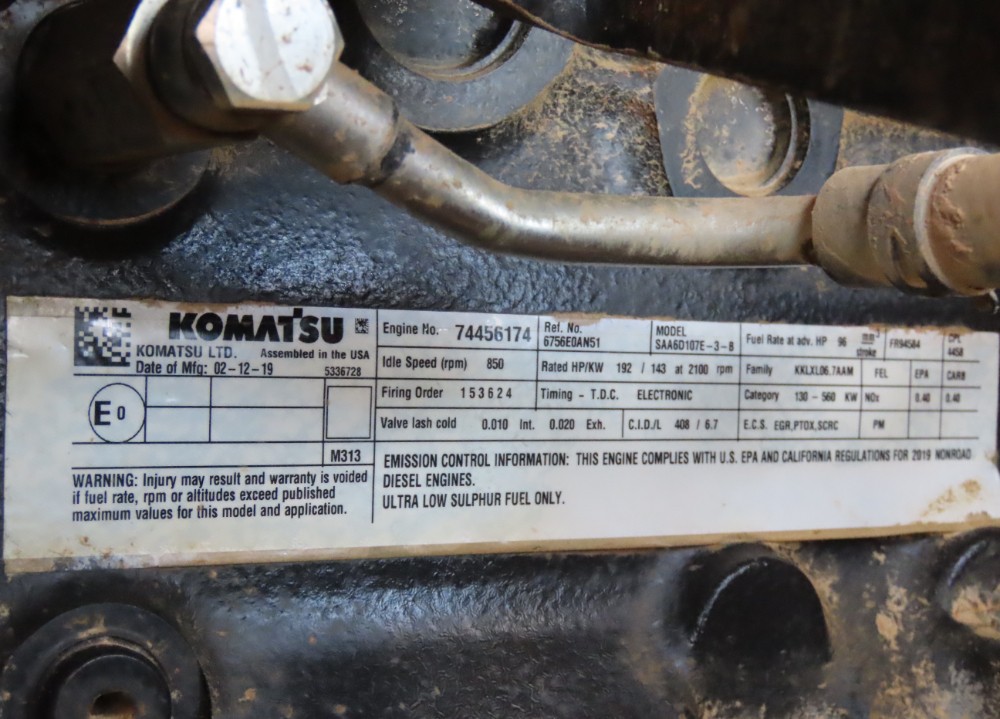 • 192 HP Komatsu SAA6D107E-3-B Engine – Diesel-powered performance with reliable operation