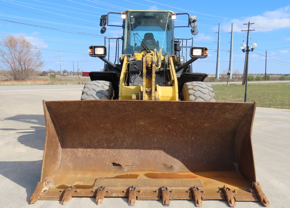 Heavy-duty wheel loader designed for demanding material handling applications. Features include articulated steering for excellent maneuverability, hydraulic quick coupler for versatile attachments, and ride control for smoother operation. Enclosed climate-controlled cab with air suspension seat provides operator comfort during extended use. Ready for loading, stockpiling, and material transport with powerful Komatsu performance.