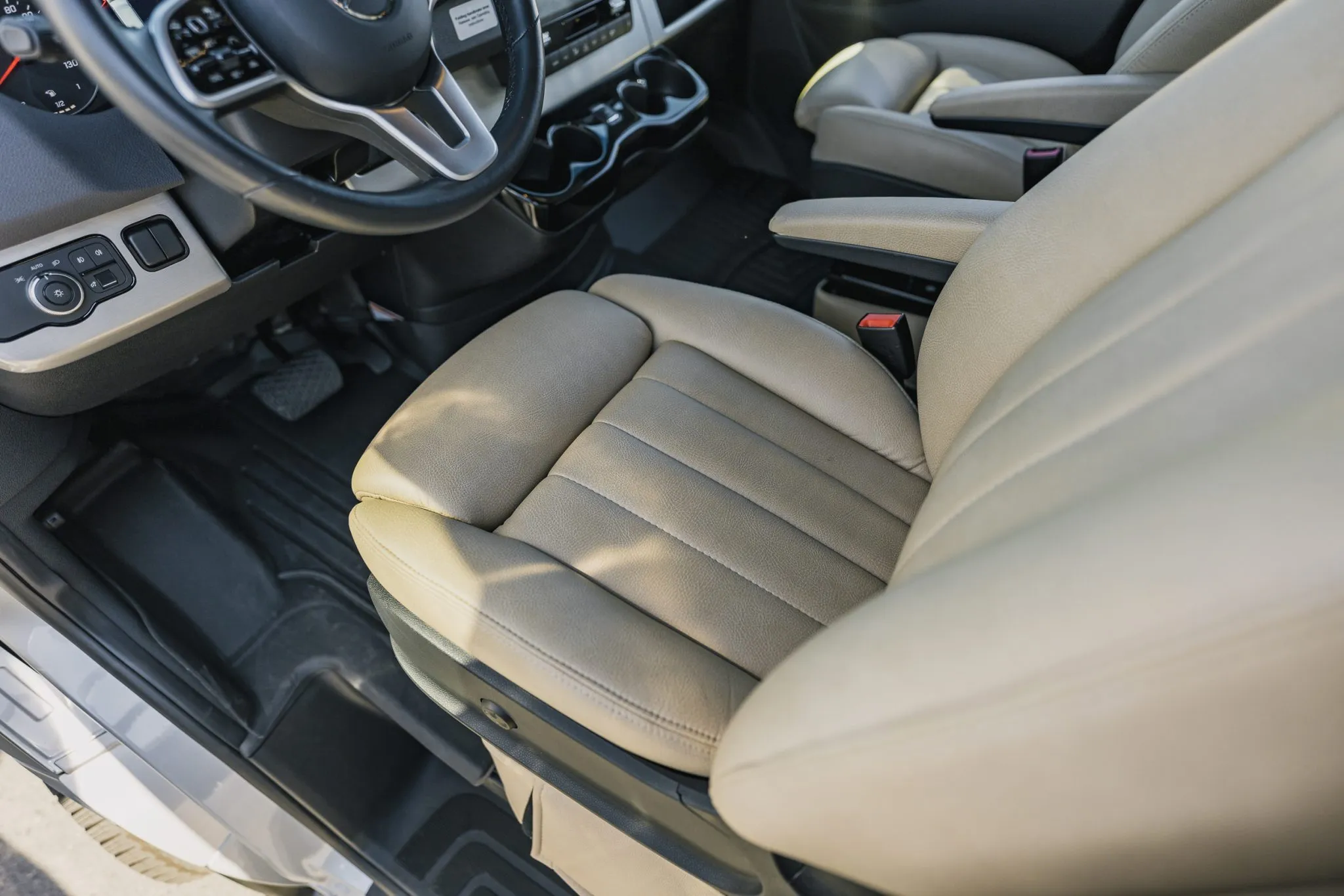 - Heated & Swiveling Front Captain’s Chairs (Beige Upholstery)