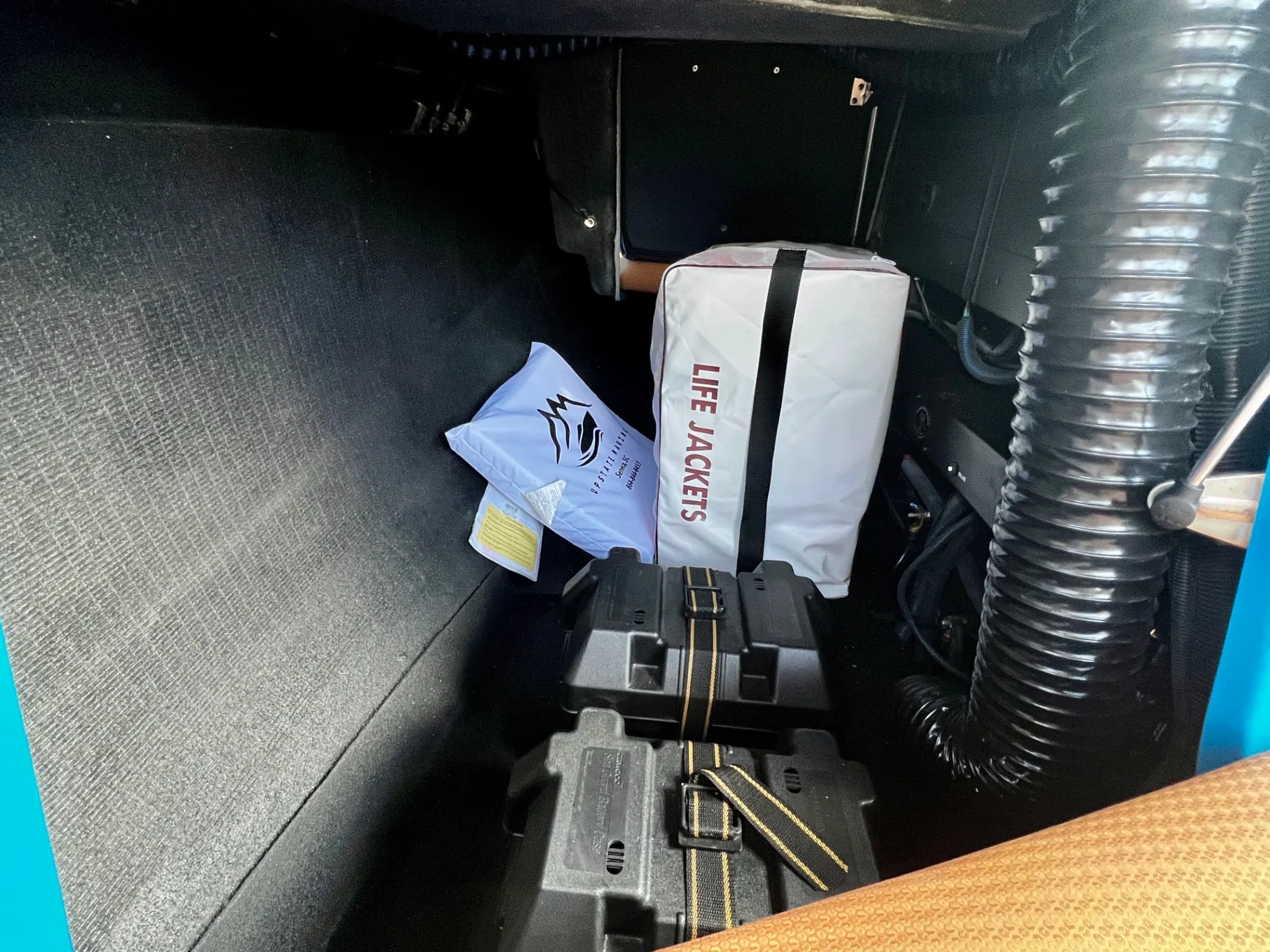 • Upgraded Paint-Matched Trailer: Boatmate trailer with custom paint match, powder-coated accents, and 18″ wheels for style and easy rolling.