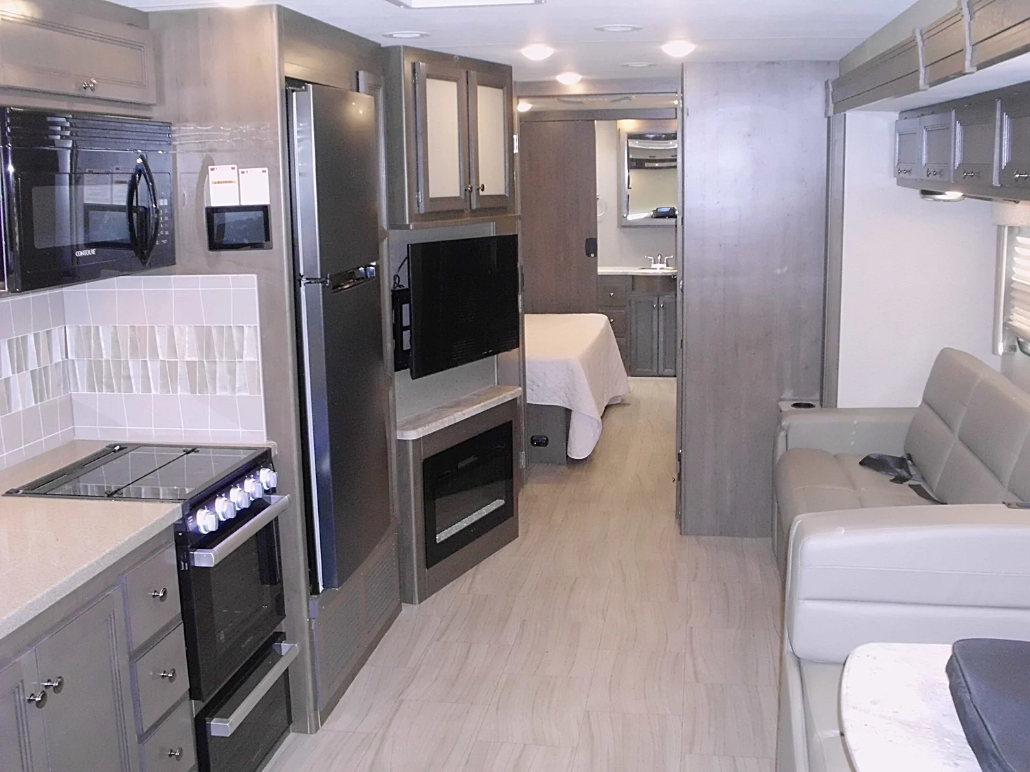 - Leatherette Interior Upholstery & Corian Countertops