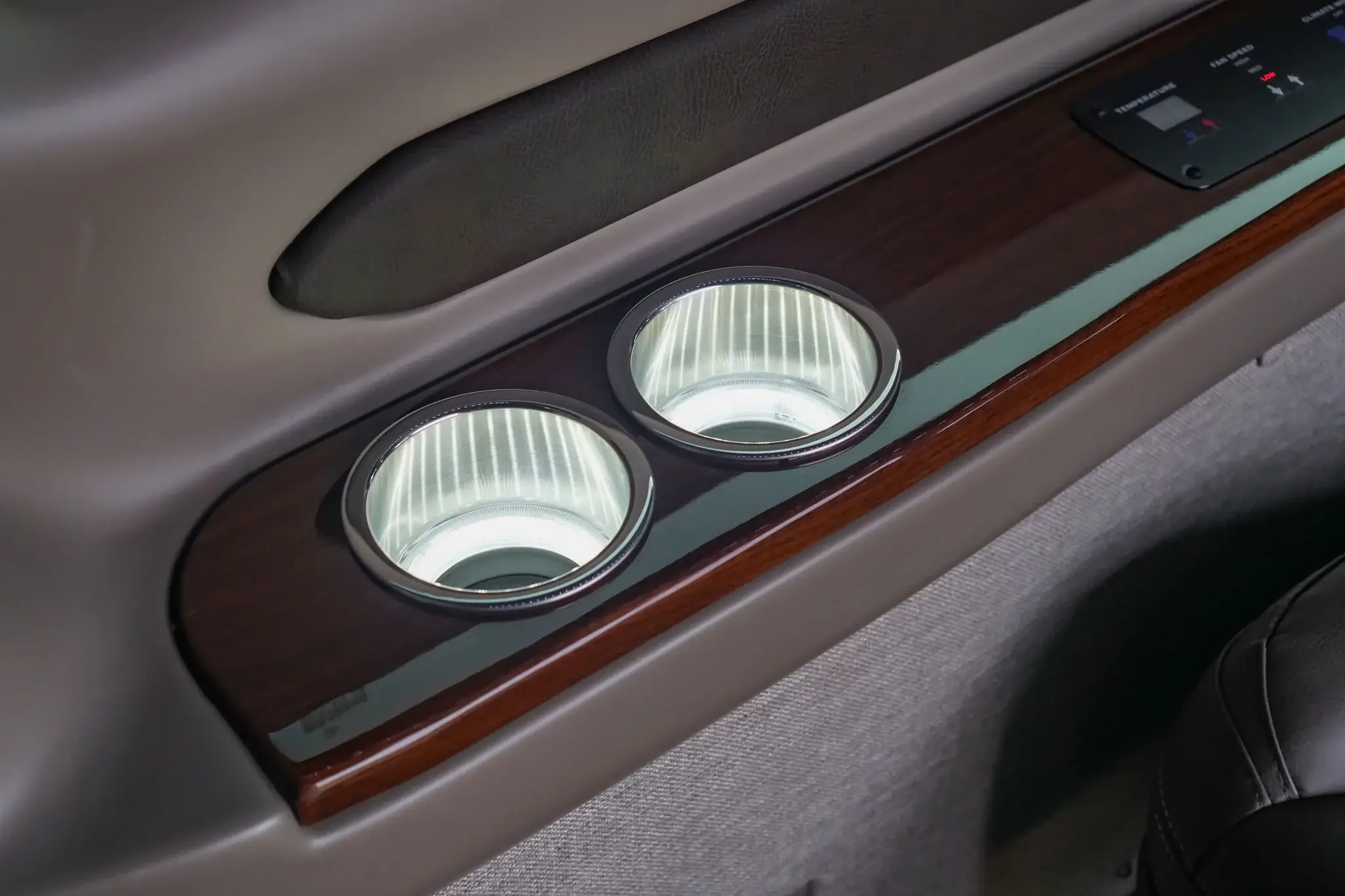 • Ambient lighting, illuminated cup holders, and privacy window shades