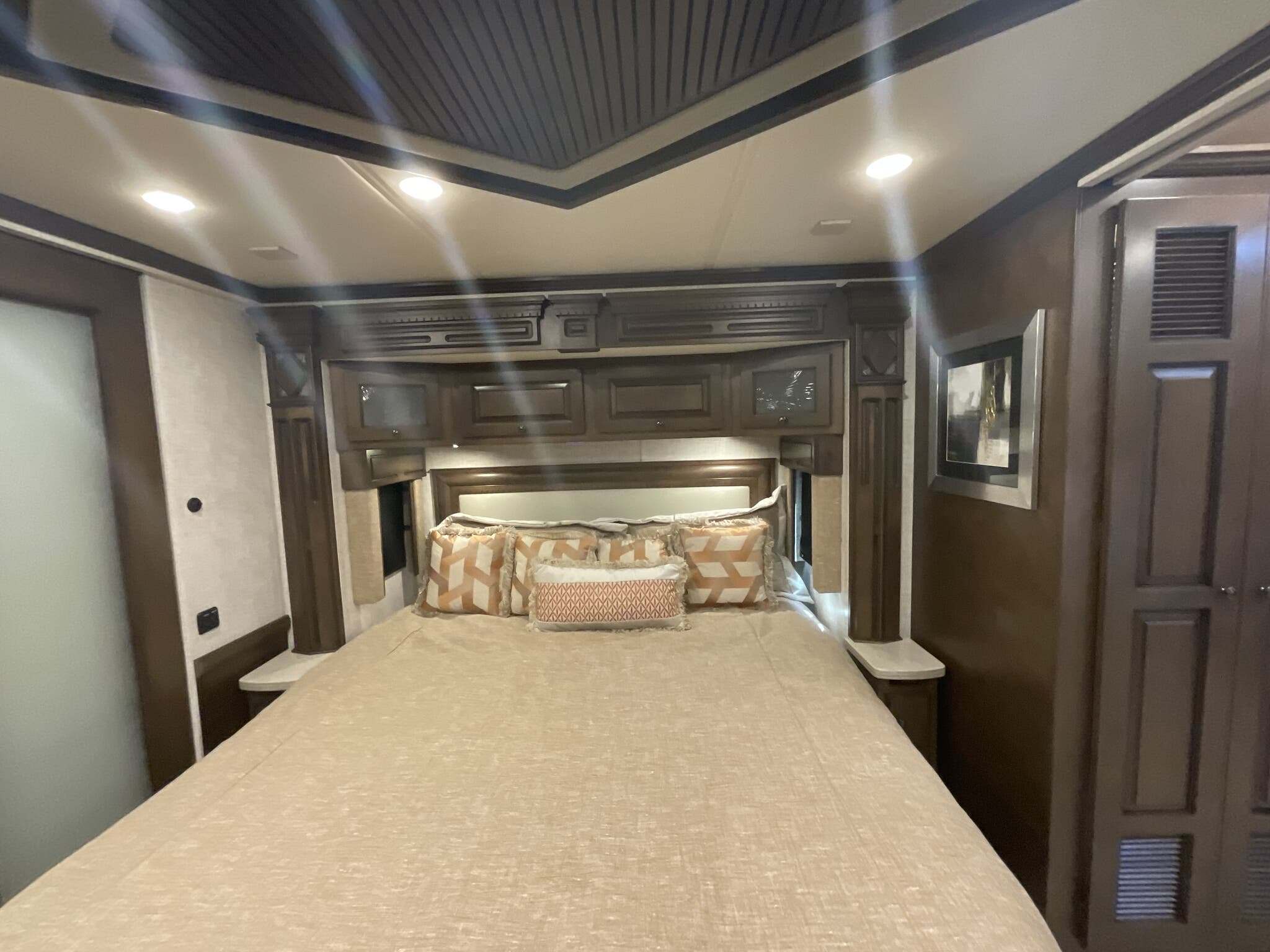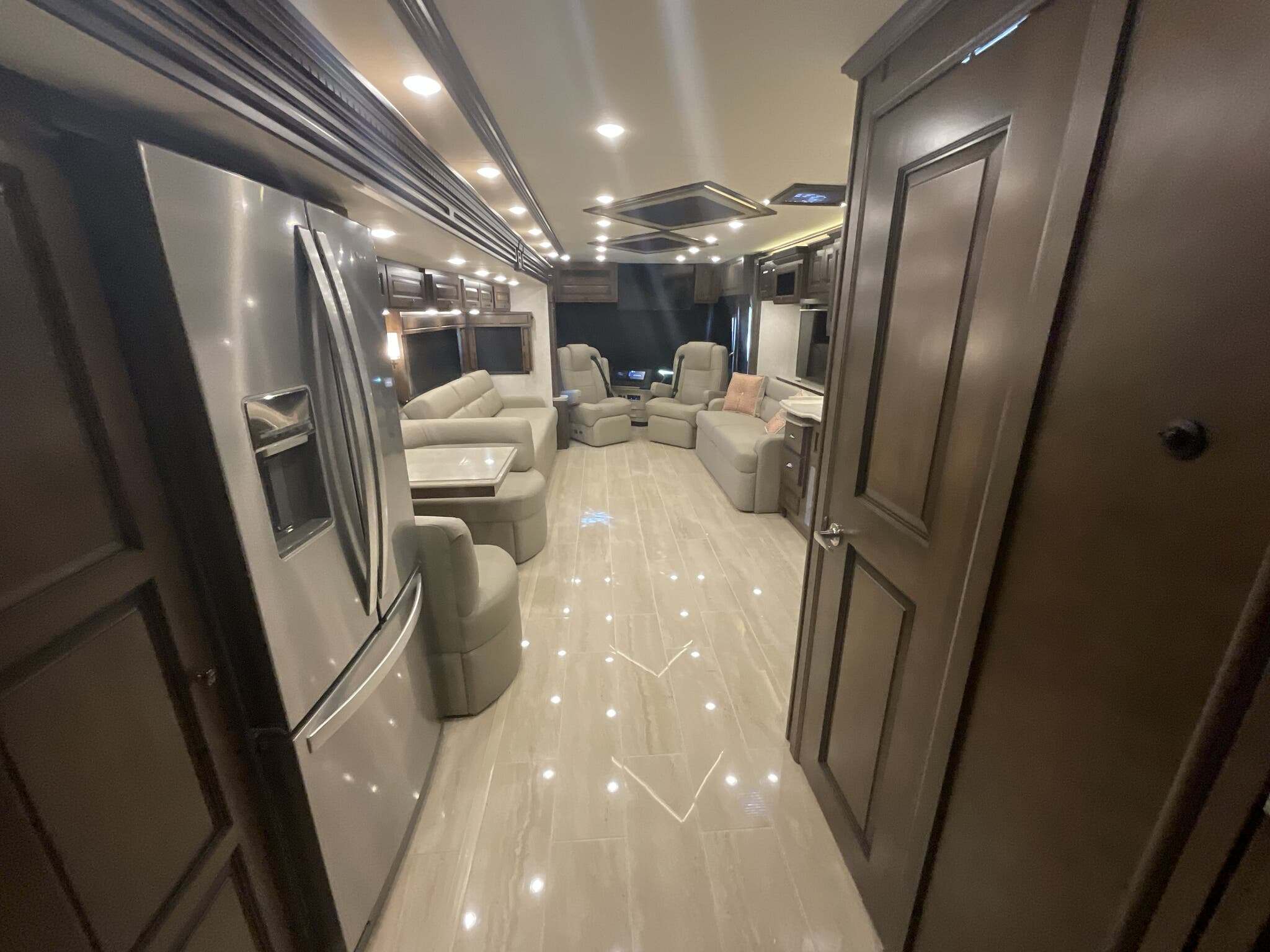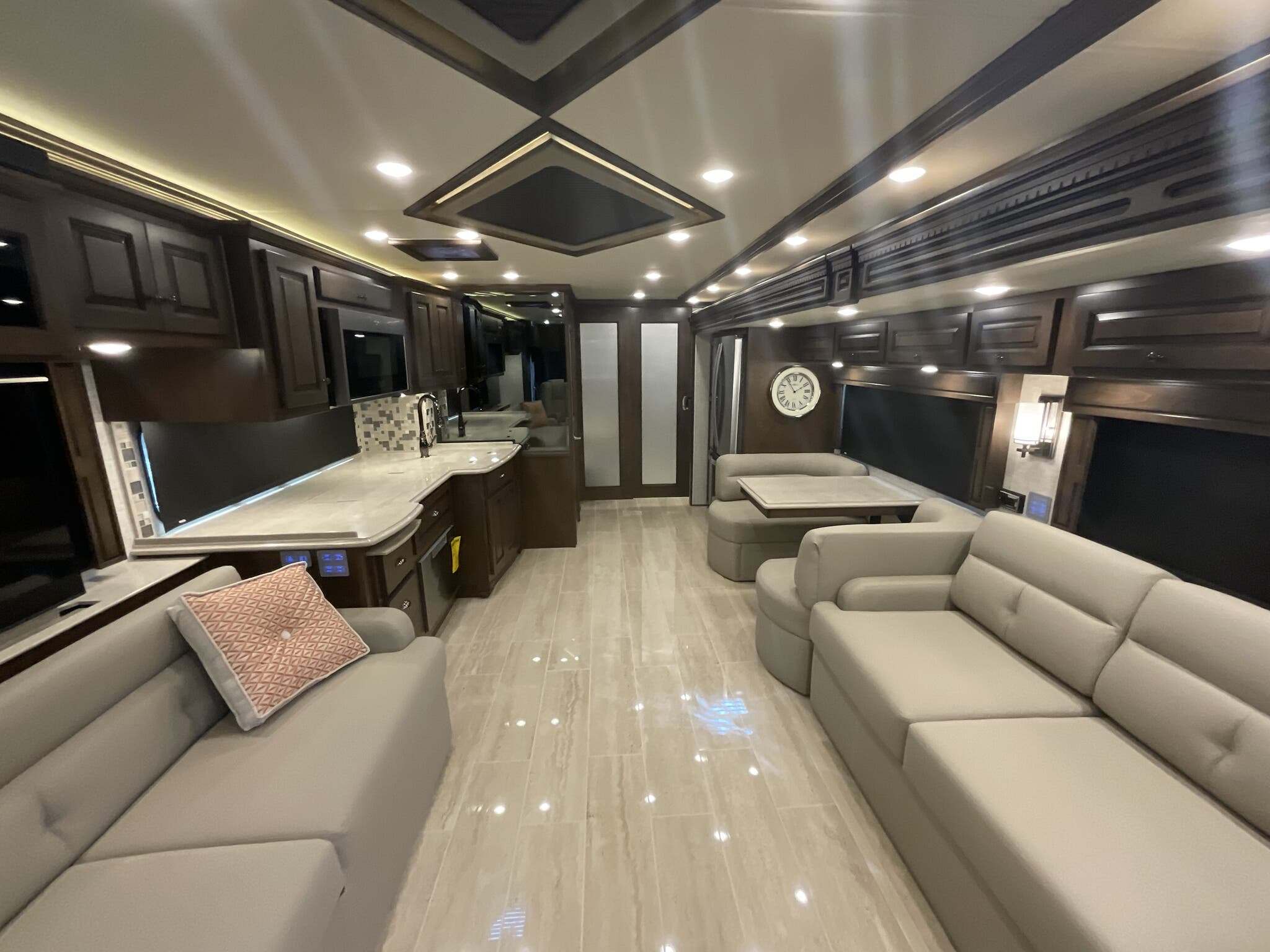 Presenting a near-new and spectacularly appointed Newmar Dutch Star 4369. With a mere 8,720 miles, this all-electric diesel pusher represents the pinnacle of custom luxury motorcoach living. Built on a robust K2 Spartan tag axle chassis, it features a special-order Champagne Metallic paint and a stunning Bahama interior with high-end amenities for the most discerning traveler.