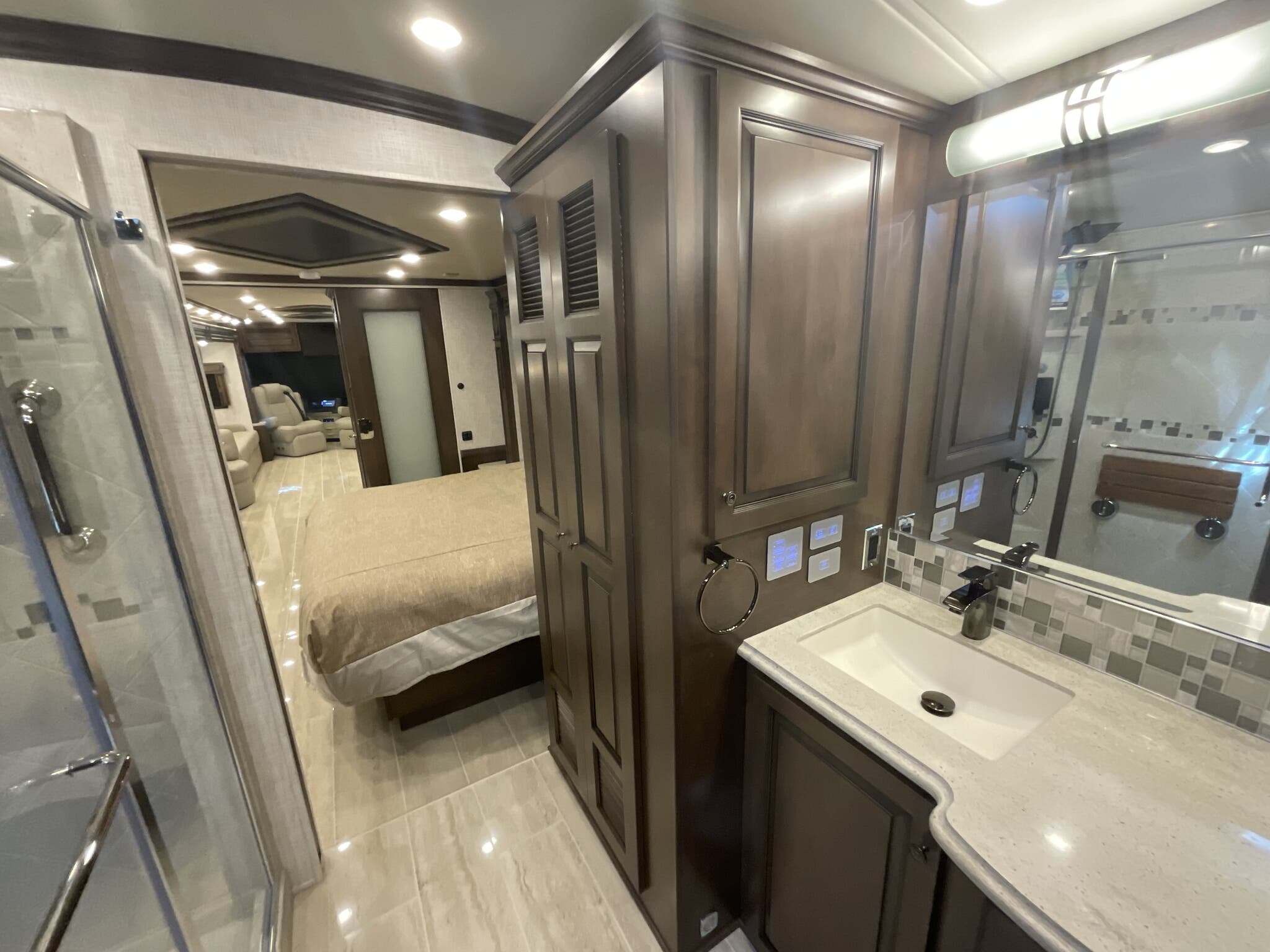 This Newmar Dutch Star 4369 is a breathtaking example of custom luxury on wheels. Virtually untouched with only 8,720 miles, it combines formidable K2 Spartan performance with a lavishly appointed, all-electric interior. From the special-order paint and countertops to the Sleep Number bed, induction cooktop, and comprehensive Girard awning package, no detail has been overlooked. This coach is designed for those who demand the ultimate in safety, comfort, and style.