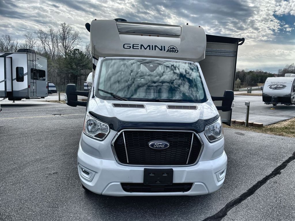 Introducing the incredibly efficient and well-equipped Thor Motor Coach GEMINI 23TW. With remarkably low mileage of just 6,200, this compact Class C motorhome maximizes every inch of its 23′ 7″ length. It’s packed with high-end amenities like a ceiling-ducted A/C, power awning, and a flip-up queen bed, making it the perfect blend of maneuverability and comfort for couples or small families.