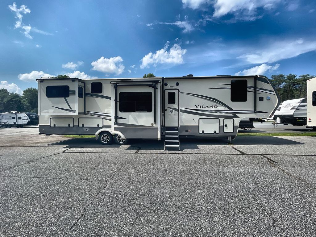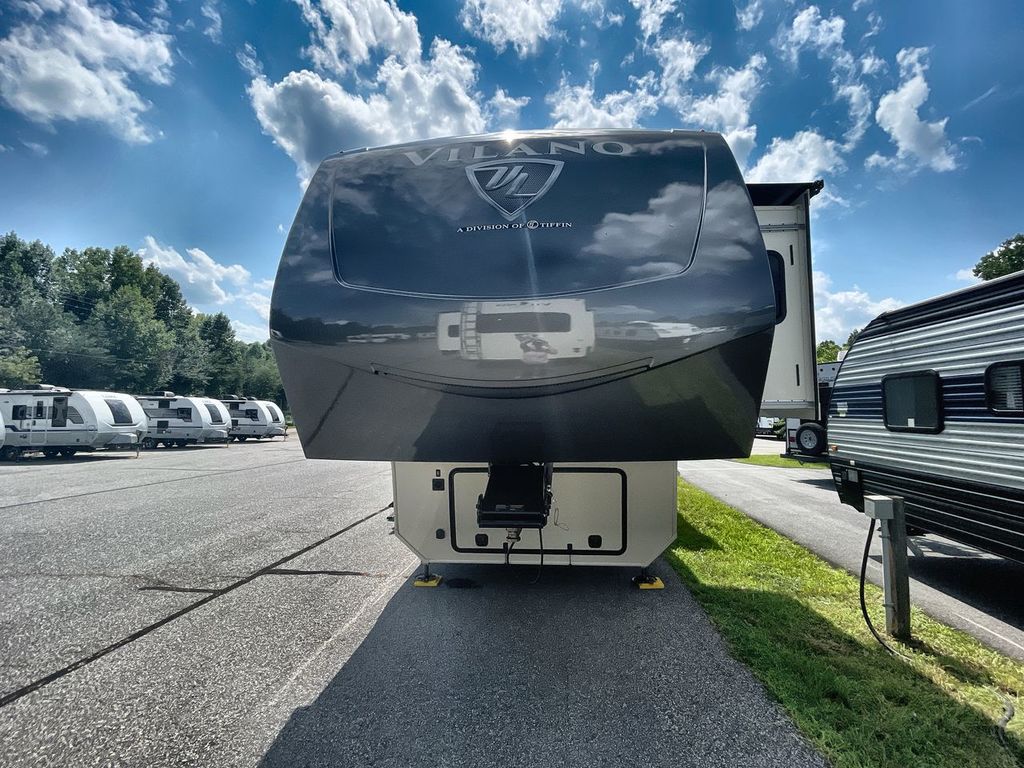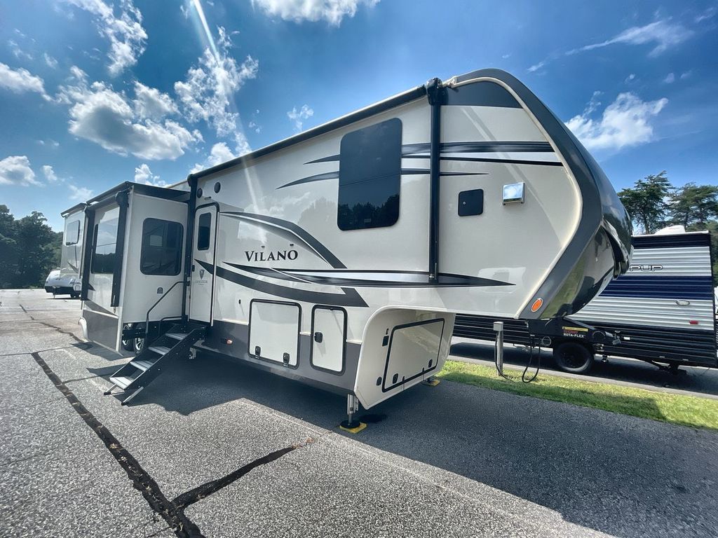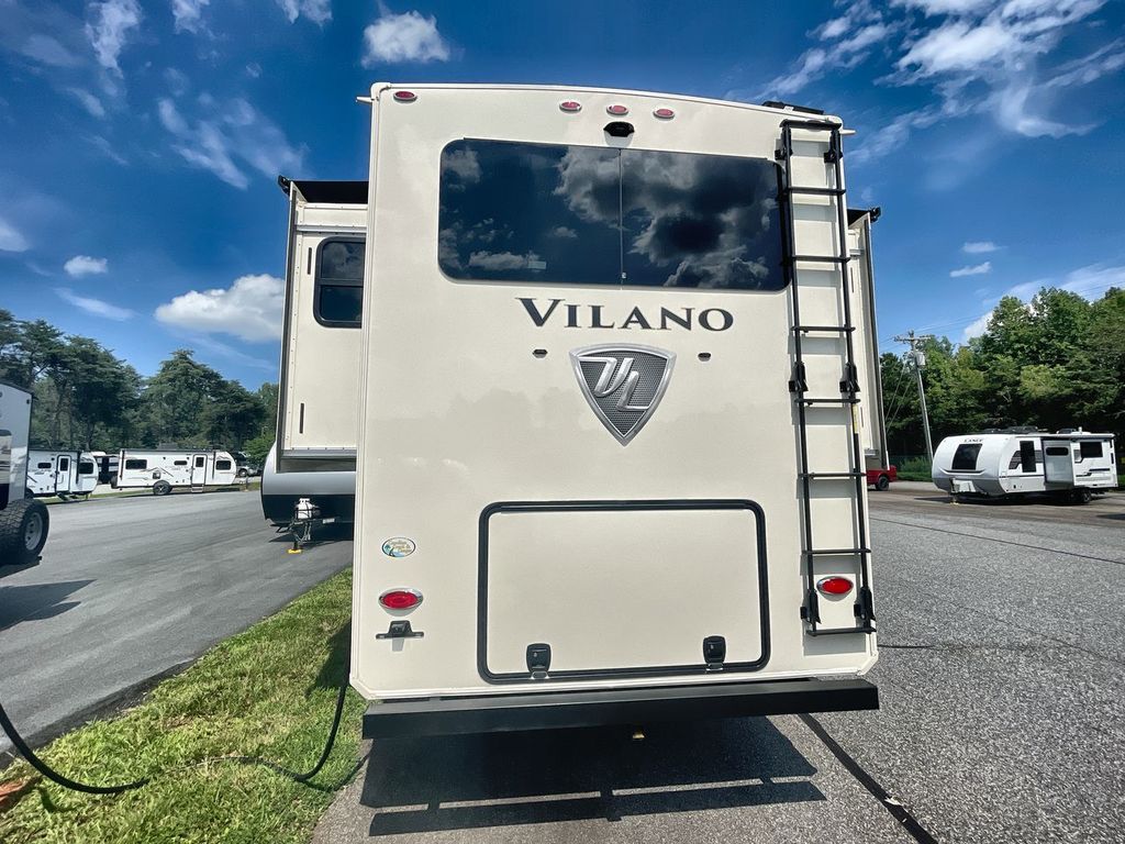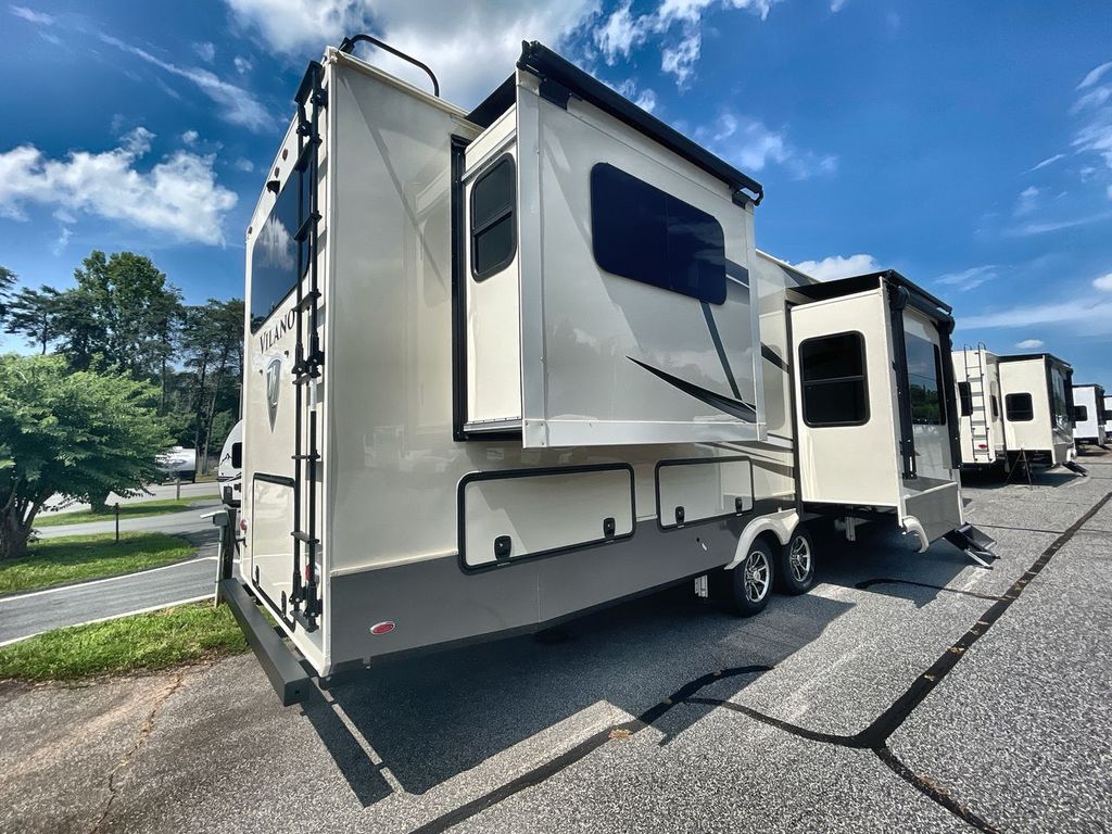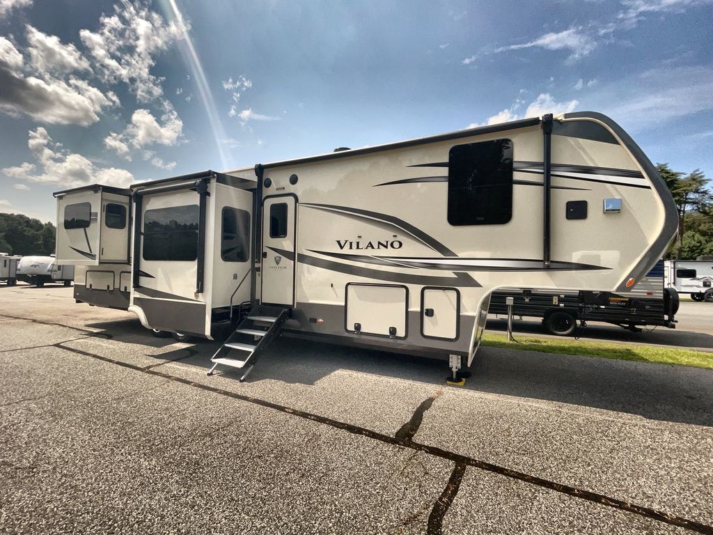 The Vanleigh RV Vilano 385RD is the definition of high-end fifth wheel living. Its five-slideout, rear-living design creates a breathtakingly open and functional space, packed with residential features like a farmhouse sink, residential refrigerator, and theater seating. Built with premium materials and advanced systems like the Spyder multiplex controls and six-point leveling, this coach is designed for those who refuse to compromise on comfort, style, or capability on the road.