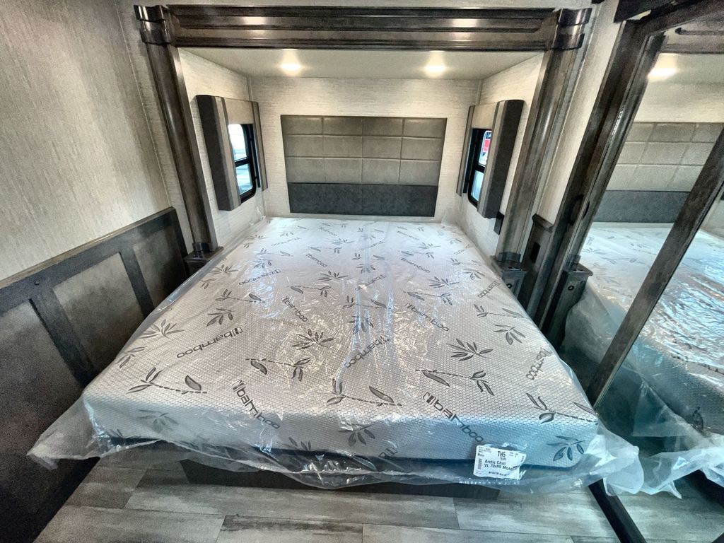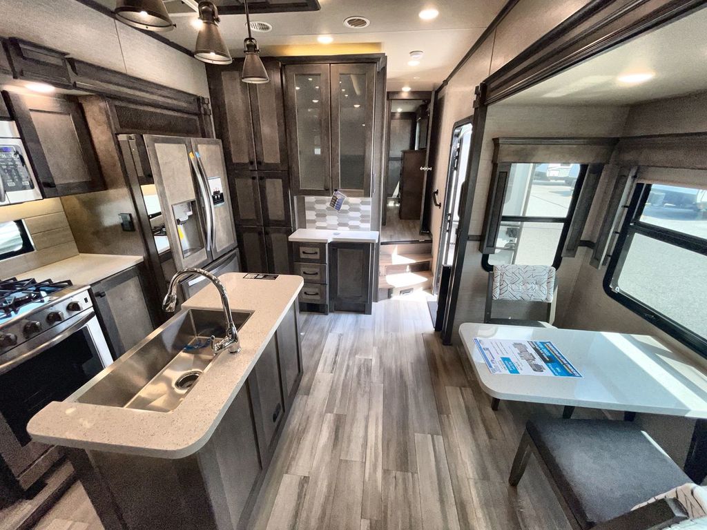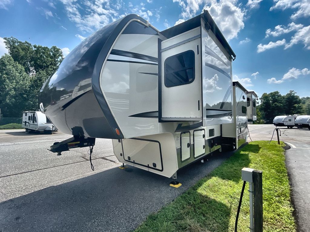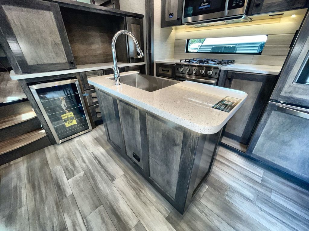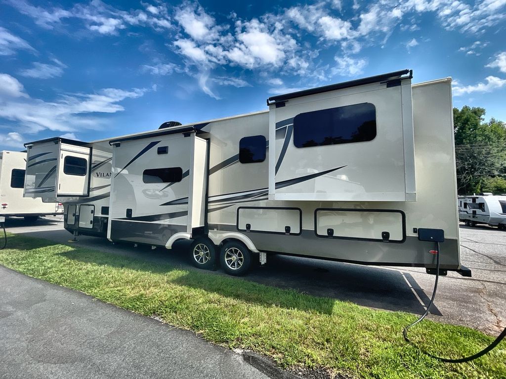 The Vanleigh RV Vilano 385RD is the definition of high-end fifth wheel living. Its five-slideout, rear-living design creates a breathtakingly open and functional space, packed with residential features like a farmhouse sink, residential refrigerator, and theater seating. Built with premium materials and advanced systems like the Spyder multiplex controls and six-point leveling, this coach is designed for those who refuse to compromise on comfort, style, or capability on the road.