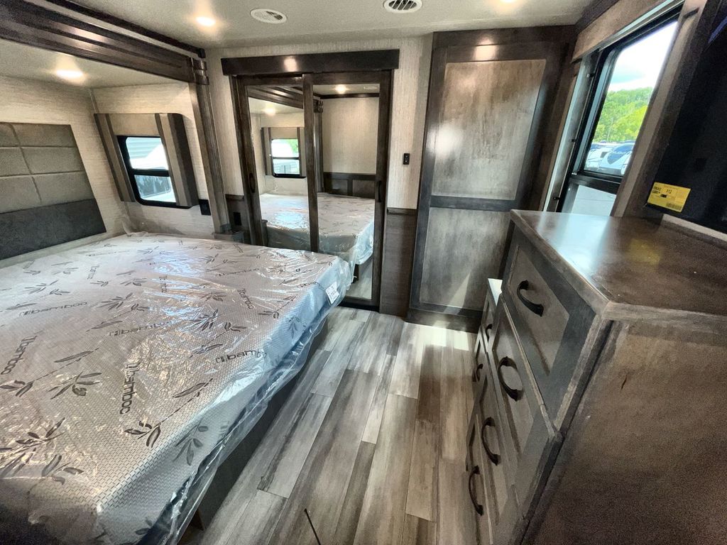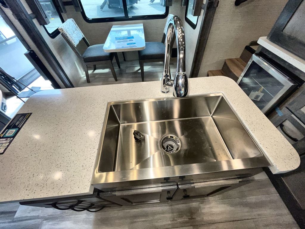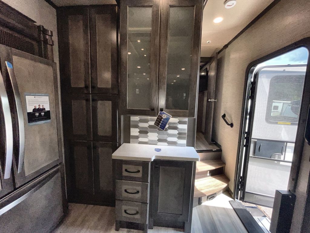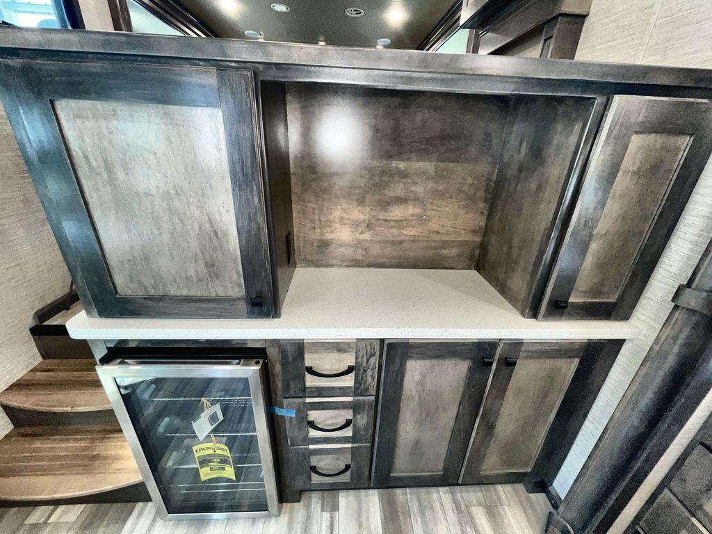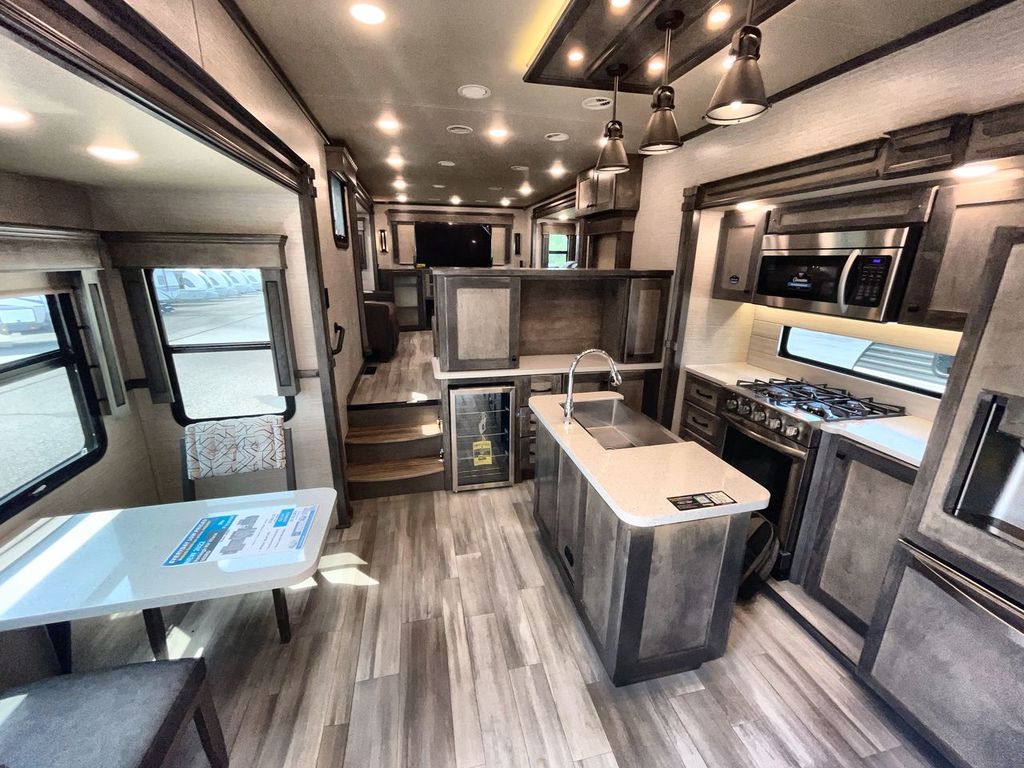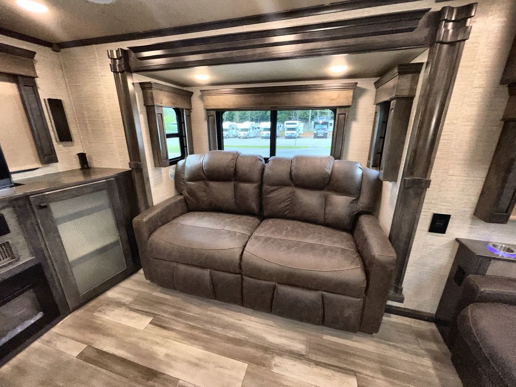 The Vanleigh RV Vilano 385RD is the definition of high-end fifth wheel living. Its five-slideout, rear-living design creates a breathtakingly open and functional space, packed with residential features like a farmhouse sink, residential refrigerator, and theater seating. Built with premium materials and advanced systems like the Spyder multiplex controls and six-point leveling, this coach is designed for those who refuse to compromise on comfort, style, or capability on the road.